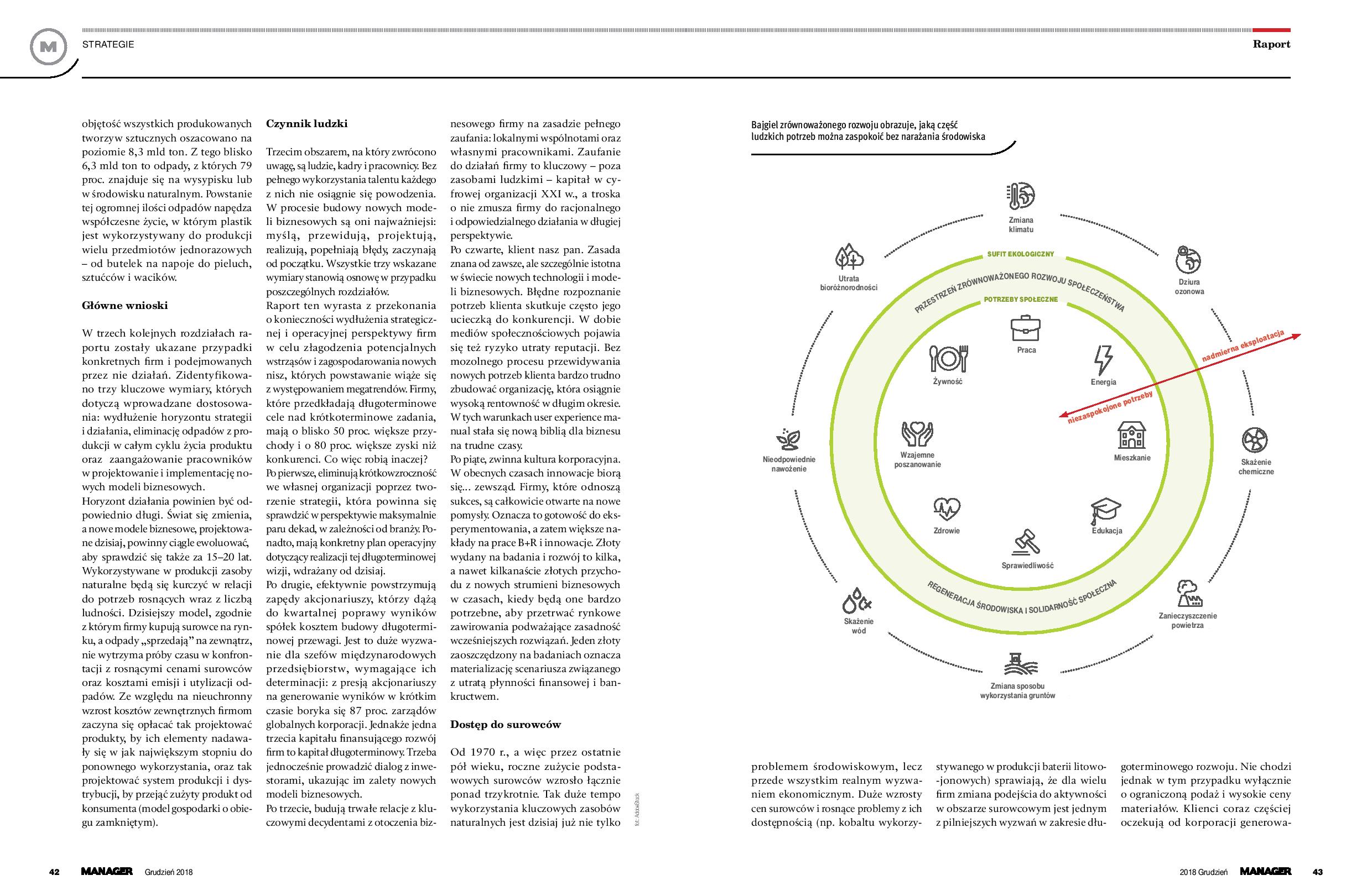 Z przeprowadzonego w 2017 r. przez McKinsey & Company dużego badania dotyczącego trwałego rozwoju wynika, że zmiana podejścia do aktywności w obszarze surowcowym została wskazana jako jedno z pilniejszych wyzwań stojących przed biznesem. Przede wszystkim odnosiło się to do konieczności poprawy efektywności energetycznej, optymalizacji projektowania produktów (i usług) oraz poprawy zarządzania odpadami.