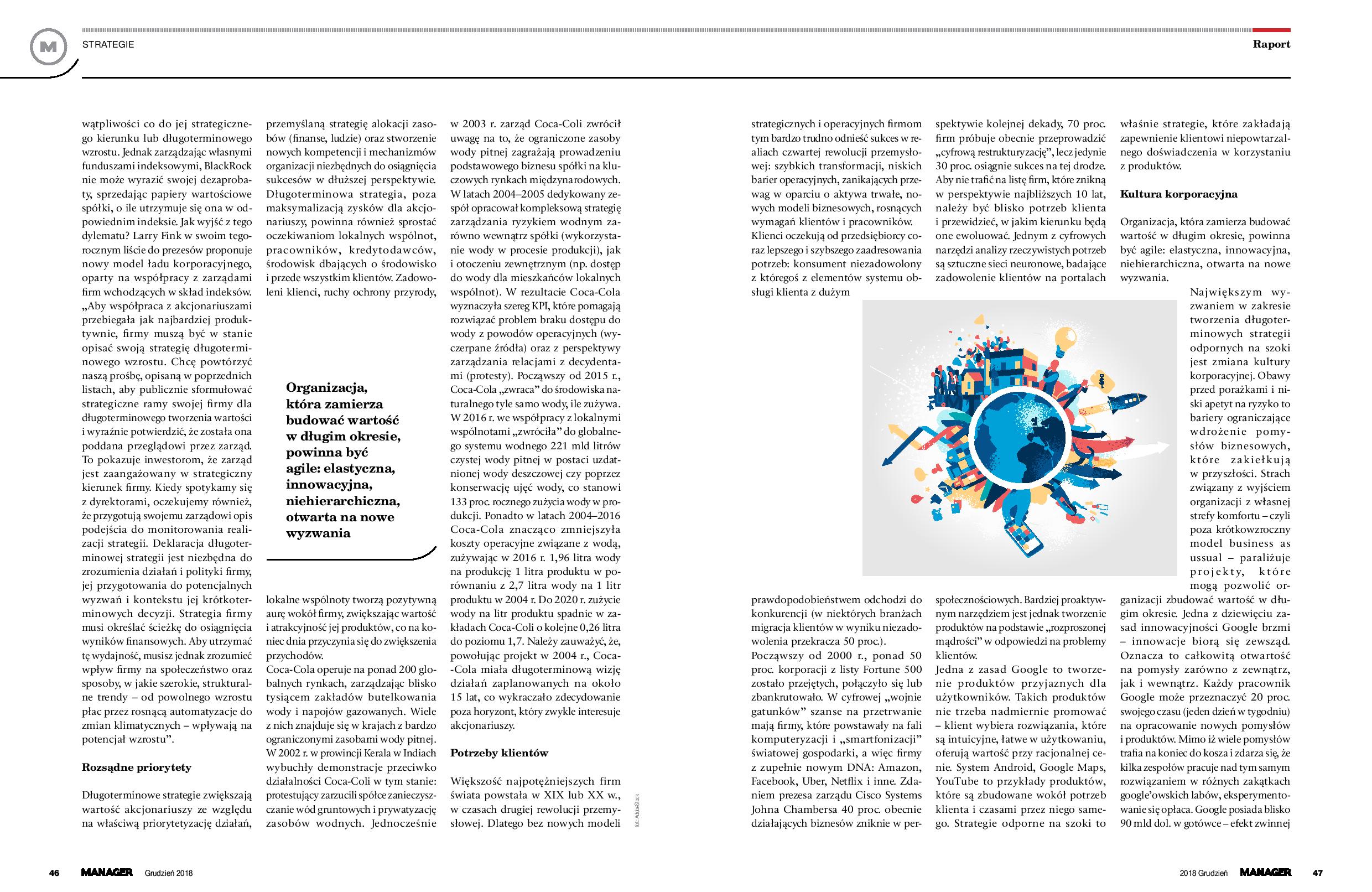 -Cola miała długoterminową wizję działań zaplanowanych na około 15 lat, co wykraczało zdecydowanie poza horyzont, który zwykle interesuje akcjonariuszy.