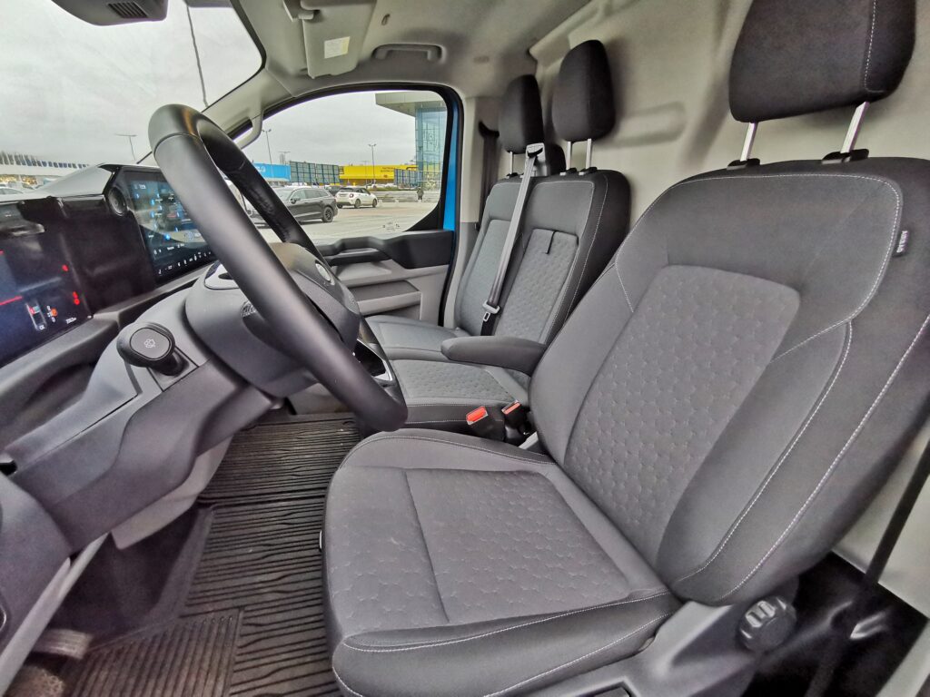 Drugie duże zaskoczenie to wyciszenie wnętrza. Akustyczna przednia szyba sprawia, że w kabinie jest zaskakująco cicho, momentami aż za spokojnie jak na auto użytkowe. Bez problemu można porównać ten poziom komfortu akustycznego do dobrze wyposażonych busów wersji VIP.