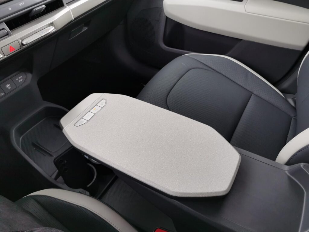 Po zajęciu miejsca za kierownicą EV3 bardzo szybko przestaje się analizować, a zaczyna się po prostu jechać. Układ kokpitu jest czytelny, logiczny i — co dziś coraz rzadsze — nie próbuje robić rewolucji na siłę. Duże ekrany są tam, gdzie się ich spodziewasz. Sterowanie klimatyzacją nie wymaga doktoratu z interfejsów. Materiały? Nie premium, ale uczciwe. Twarde tam, gdzie mogą być twarde, miękkie tam, gdzie faktycznie dotykasz ich na co dzień. Jest jednak jeden element, którego do dziś nie rozumiem. Chodzi o wysuwaną część podłokietnika na konsoli centralnej, który do złudzenia przypomina kuchenną deskę do krojenia. Czyżby to „oczko” puszczone do użytkowników chcących zrobić sobie piknik podczas ładowania?
