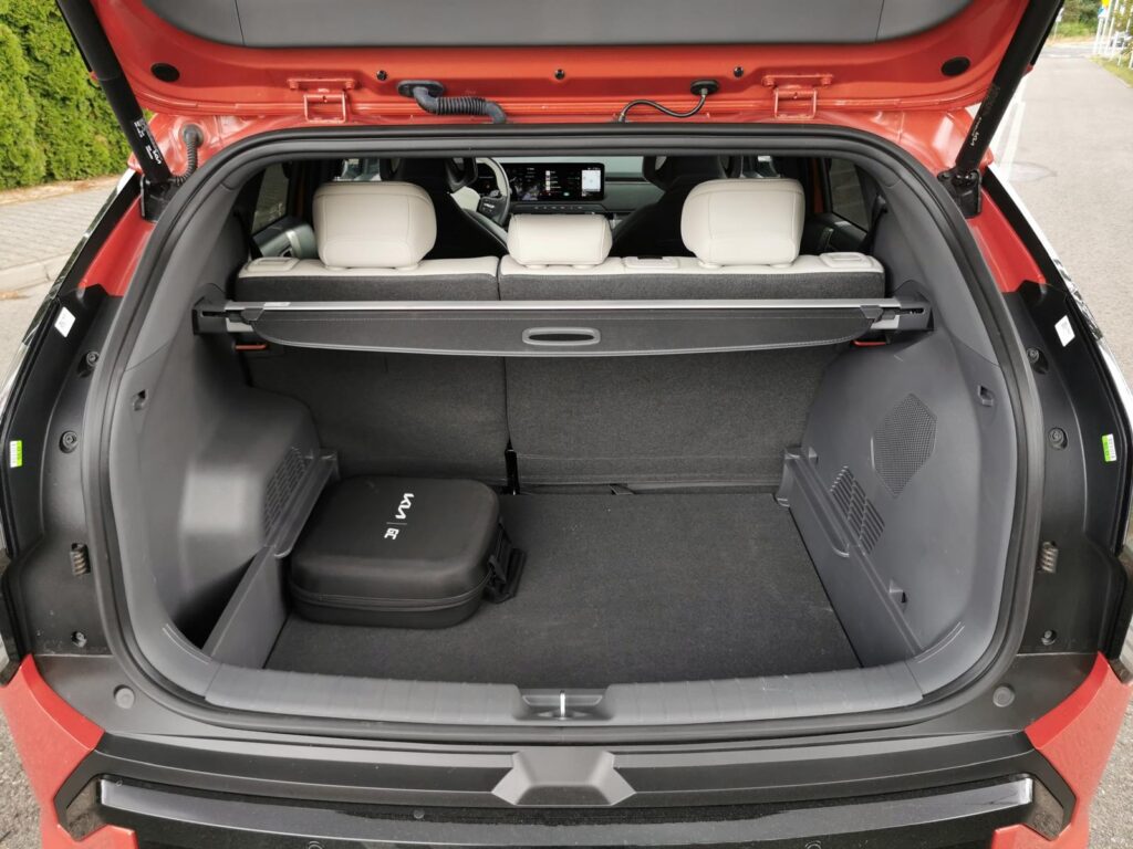 Największym zaskoczeniem jest jednak przestrzeń. EV3 daje poczucie auta większego niż wskazywałaby metryka. Z tyłu jest wystarczająco miejsca, by dorosły pasażer czuł się komfortowo, a bagażnik nie zmusza do gry w tetris przy każdym wyjeździe. Powiem więcej, zaskakuje swoją wielkością i ustawnością podczas pakowania.