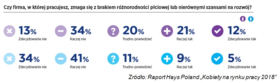 Obok firm, których pracownicy wskazują na brak różnorodności w strukturze, na rynku nie brakuje również dobrych przykładów. Część pracodawców świadomie i dojrzale podchodzi do kwestii różnorodności. 16% kobiet i 25% mężczyzn, którzy wzięli w tegorocznym badaniu Hays Poland podkreśla, że firma w której obecnie pracują, wdrożyła oficjalną politykę różnorodności. W takich organizacjach o awansie i możliwościach rozwoju pracownika decyduje jego chęć, doświadczenie, kompetencje oraz umiejętność współpracy, a nie płeć, wiek lub inny czynnik społeczny.