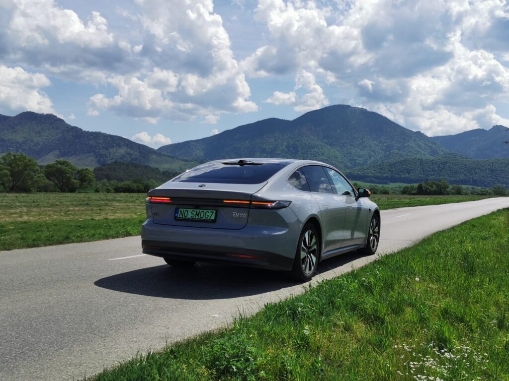 Największe wrażenie NIO ET7 robi wewnątrz. Jakość materiałów wykończeniowych i spasowanie elementów to najwyższa światowa klasa i nie jest to moje odosobnione zdanie. NIO kieruje swoje produkty do wymagających klientów i moim zdaniem idealnie w punkt trafia w ich gusta. Przetestowałem w swojej karierze grubo ponad tysiąc samochodów, także tych, których ceny oscylują wokół miliona złotych i szczerze mówiąc właśnie wśród nich postawiłbym NIO, choć kosztuje zaledwie ułamek tej ceny. Jeśli bowiem dobrze pogadać z importerem, da się takie auto wyrwać za około 350-400 tys. zł. Na pokładzie jest wszystko. Skóra, Alcantara, aluminium, wszystko doskonale wykończone subtelnymi przeszyciami. Do tego wysmakowane oświetlenie ambiente i genialny system audio. Wszystko, czego potrzeba do długiej i komfortowej podróży. Jedyne, do czego mógłbym się przyczepić, to wielkość bagażnika, którą w tej klasie limuzyn o długości przekraczających 5 metrów mógłbym uznać za skromną. 363 l to nieco zbyt mało, ale udało się nam spakować w 4 osoby na 5-dniowy wypad do Budapesztu.