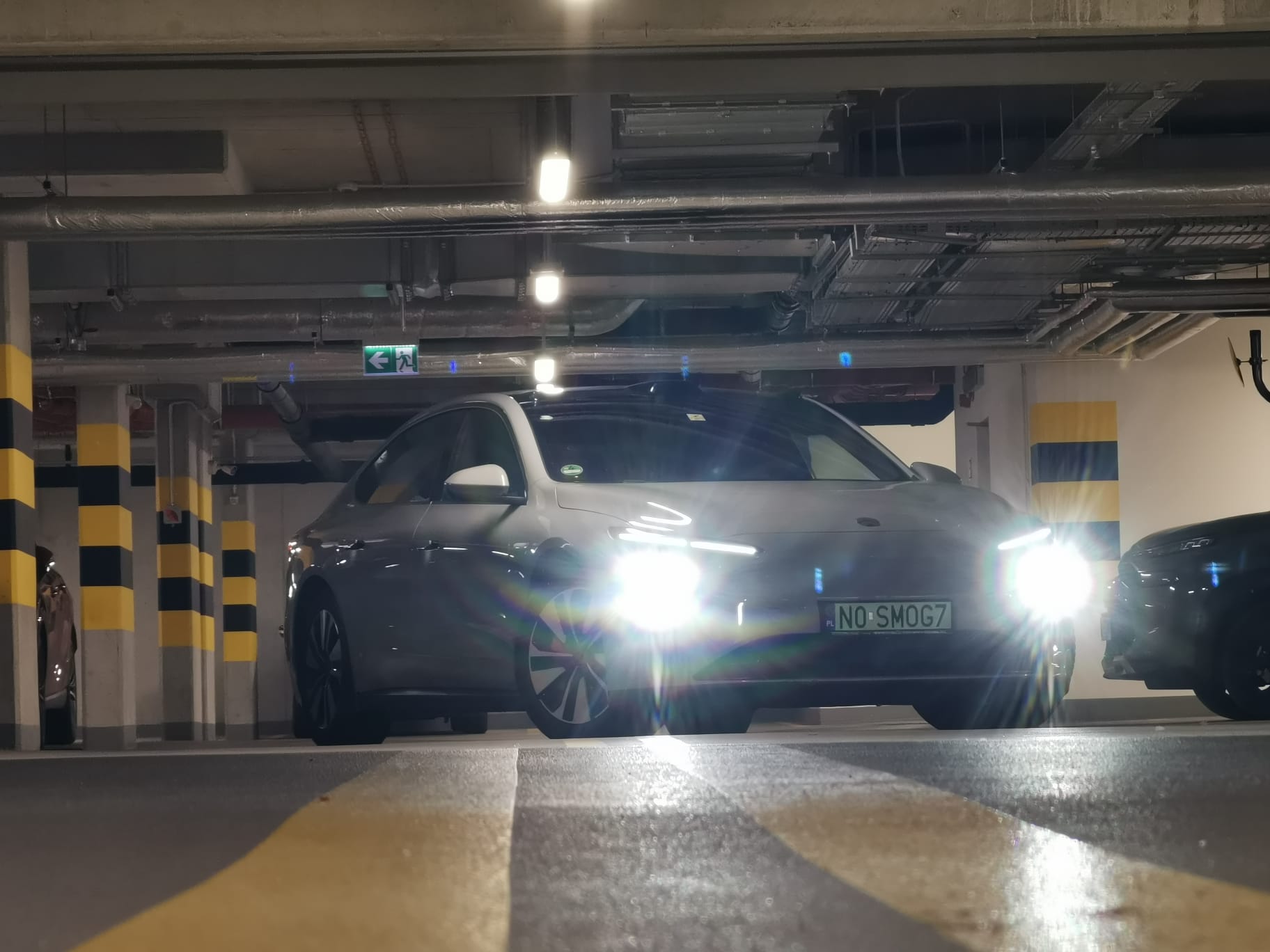 Za osiągami nadąża też układ kierowniczy i zawieszenie. Kierowca czuje to, co się dzieje z kołami i utrzymuje absolutną kontrolę nad pojazdem. Auto pewnie pokonuje zakręty i prowadzi się jak przyklejony do nawierzchni. Nie ma mowy o jakichkolwiek dziwnych dźwiękach pochodzących od układu kierowniczego i zawieszenia. Tu należy dodać, że NIO ma zawieszenie pneumatyczne. Auto po prostu płynie po drodze, a pełnię swoich zalet pokazuje na nierównościach, które niweluje niemal niezauważalnie i z wielką gracją. Pokaz swoich możliwości NIO dało na odcinku autostrady A1 od Pyrzowic do zjazdu na Katowice, gdzie występują liczne szkody górnicze. Podczas, gdy inne auta były w stanie jechać z maksymalną prędkością ok 90 km/h, przyhamowując na większych dołach, NIO niemal lewitowało nad ziemią dając się prowadzić jedną ręką i to z pełną autostradową prędkością. Tu uprzedzam, że na odcinkach z ograniczeniem prędkości przerywaliśmy nasz test dostosowując prędkość do znaków drogowych. Z resztą NIO świetnie radzi sobie z otoczeniem, ponieważ jako pierwsze w Europie zostało dopuszczone do ruchu z lidarami, czyli specjalnymi radarami umieszczonymi w dachu, tuż nad przednią szybą, dzięki którym doskonale odnajduje się w przestrzeni. ET7 potrafi rozróżnić samochód osobowy od ciężarowego, motocykl od skutera, a nawet pieszych i zwierzęta.