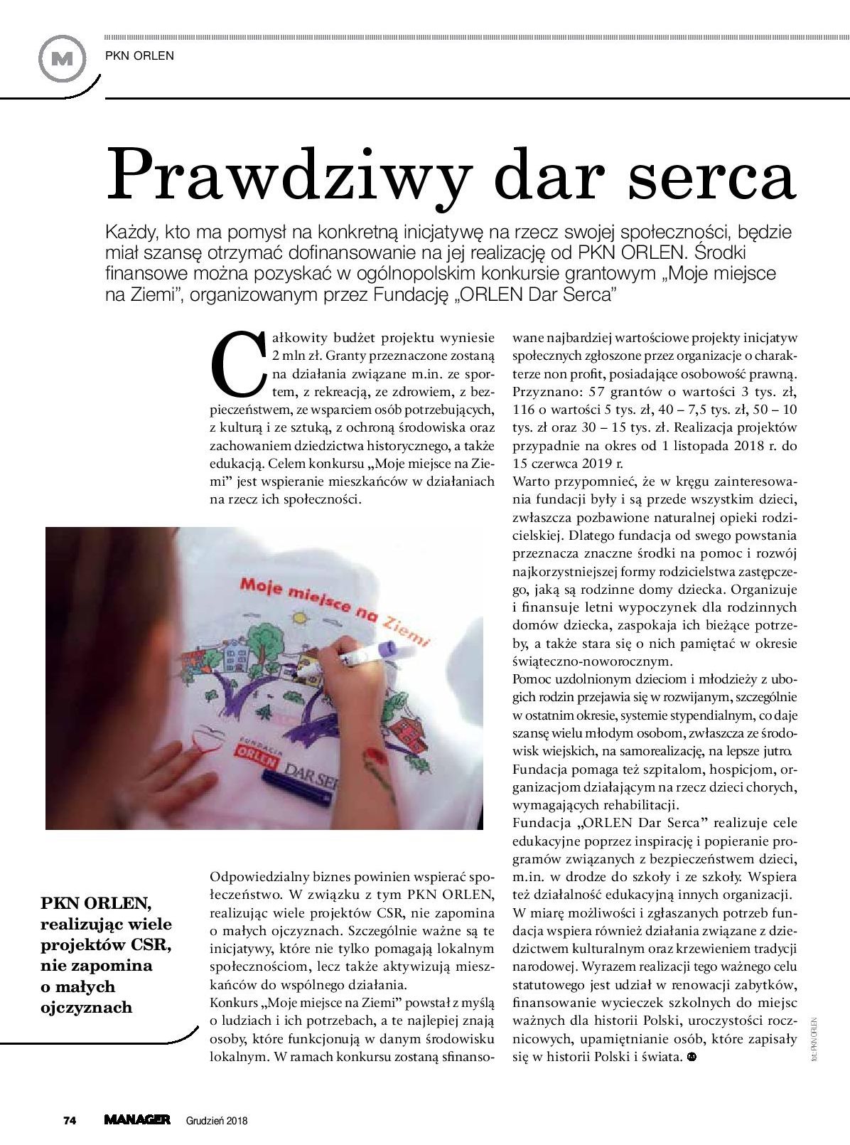 Każdy, kto ma pomysł na konkretną inicjatywę na rzecz swojej społeczności, będzie miał szansę otrzymać dofinansowanie na jej realizację od PKN ORLEN. Środki finansowe można pozyskać w ogólnopolskim konkursie grantowym „Moje miejsce na Ziemi”, organizowanym przez Fundację „ORLEN Dar Serca”.