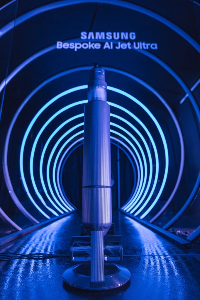 Drugim urządzeniem wprowadzonym właśnie na rynek jest Samsung Bespoke AI Jet, czyli najmocniejszy odkurzacz bezprzewodowy o mocy ssącej do 400W! Porównując go z poprzednim modelem Bespoke Jet AI, który generował moc ssącą do 280W ma się do czynienia z prawdziwym przełomem w technologii odkurzania i mocą, która poradzi sobie z różnorodnymi zabrudzeniami. Co jeszcze go wyróżnia? Tryb Odkurzania AI, który automatycznie dopasowuje moc ssącą do rodzaju powierzchni, dzięki czemu można odkurzać dłużej na jednym ładowaniu. A gdy się skończy, odstawia się odkurzacz na stację i jednym przyciskiem oczyszcza pojemnik na kurz, który trafia do worka umieszczonego w stacji.