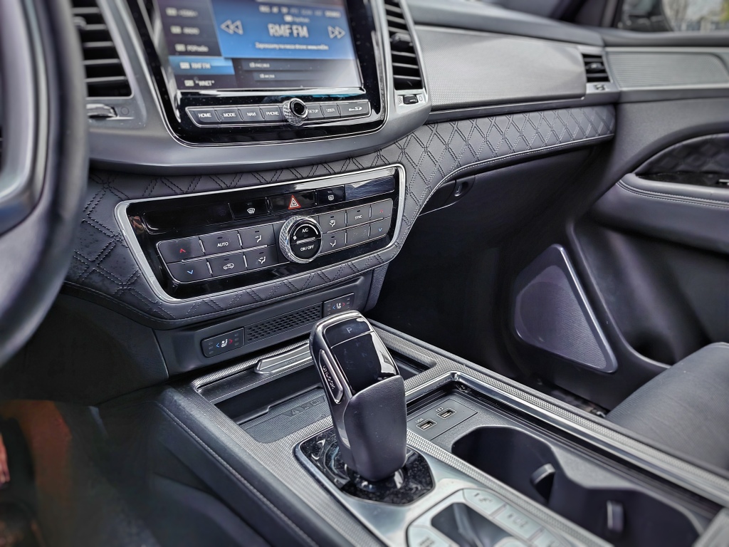 Rexton to duży SUV zbudowany na ramie, który występuje w opcjach pięcio- i siedmioosobowej. To jedna z ostatnich takich konstrukcji na rynku nie licząc Toyoty Land Cruiser, Jeepa Wranglera i kilku pick-upów. Ogromna karoseria, 20-calowe felgi i duży prześwit robią świetne wrażenie. Podobnie jest wewnątrz. Po otwarciu drzwi, przez chwilę zastanawiałem się, czy nie jestem w ukrytej kamerze… Fotele i deska rozdzielcza wykończona pikowaną skórą, aluminiowe listwy, minimalne przerwy między poszczególnymi elementami, idealne spasowanie. Szczeliny pomiędzy elementami są tak równiutkie, że byłbym w stanie uwierzyć, że deska rozdzielcza składana jest przez roboty z wykorzystaniem czujników laserowych, do tego wszystko jest przyjemne w dotyku. I jeszcze ten zapach, który kojarzy się raczej z klasą premium… no jest naprawdę dobrze! Rozstaw osi 2865mm sprawia, że miejsca dla kierowcy i wszystkich pasażerów jest aż nadto. 5 dorosłych osób zmieści się swobodnie, a do bagażnika wejdą spokojnie 4 psy i ekwipunek myśliwski.