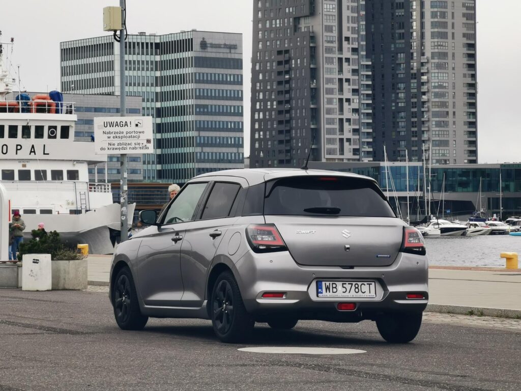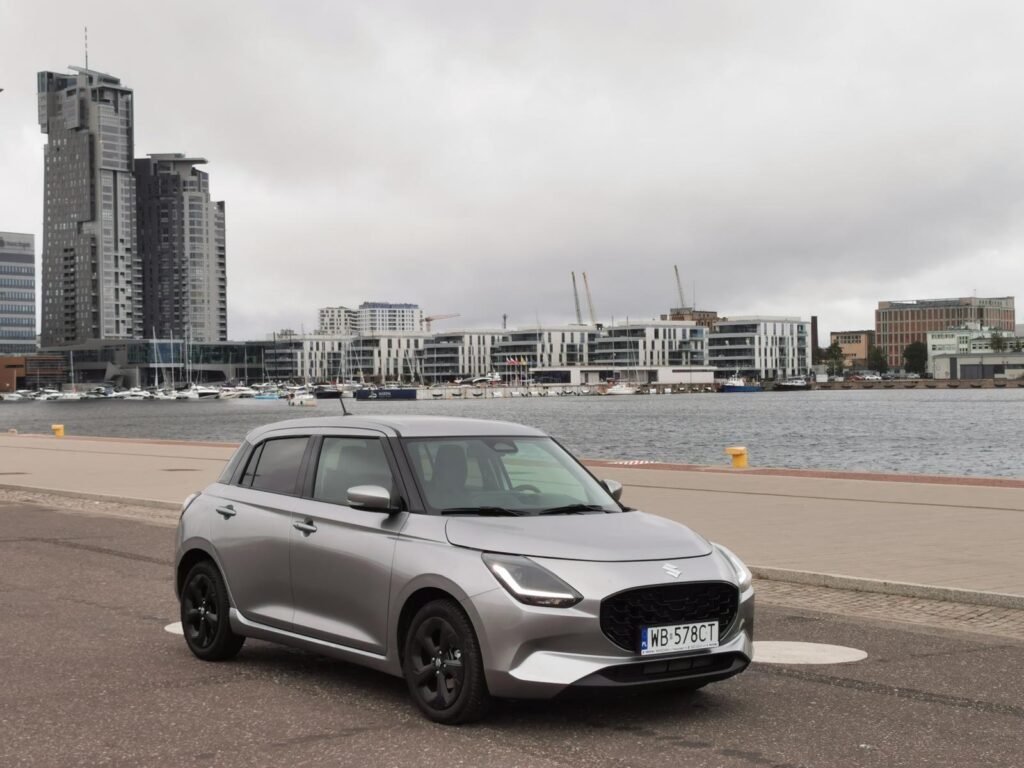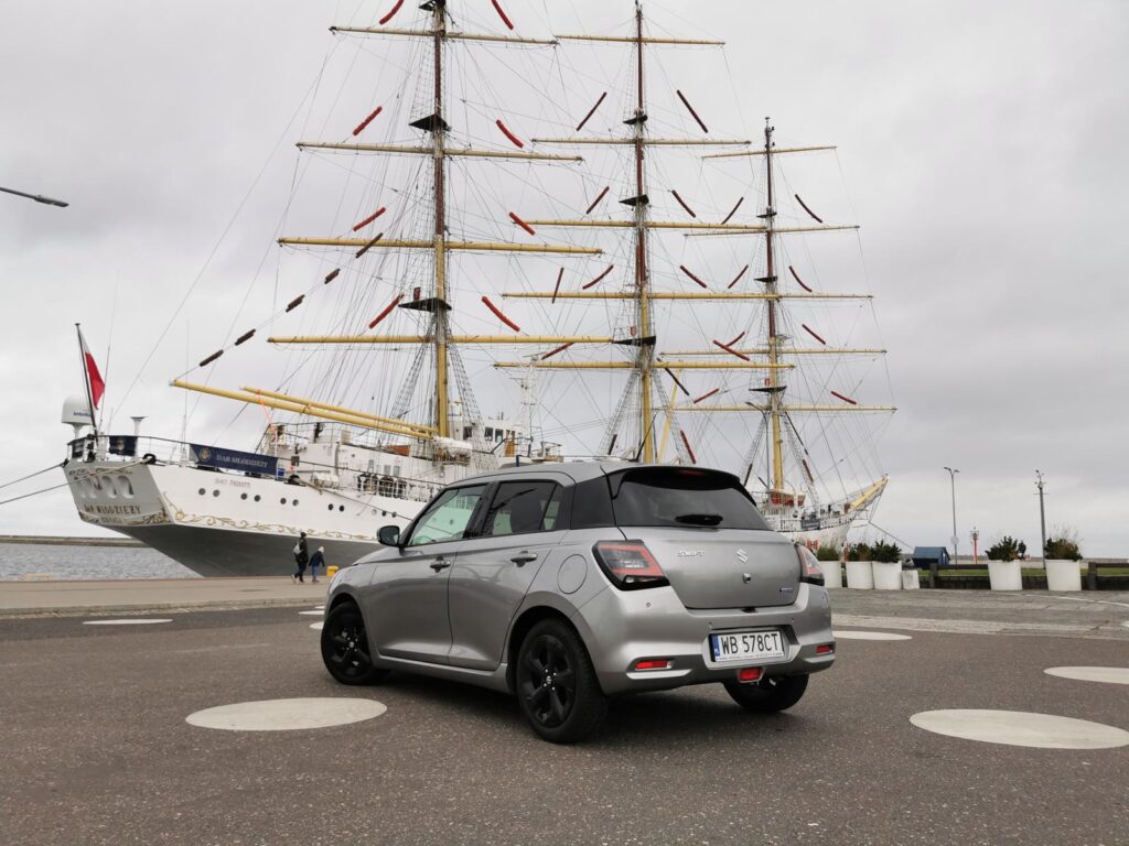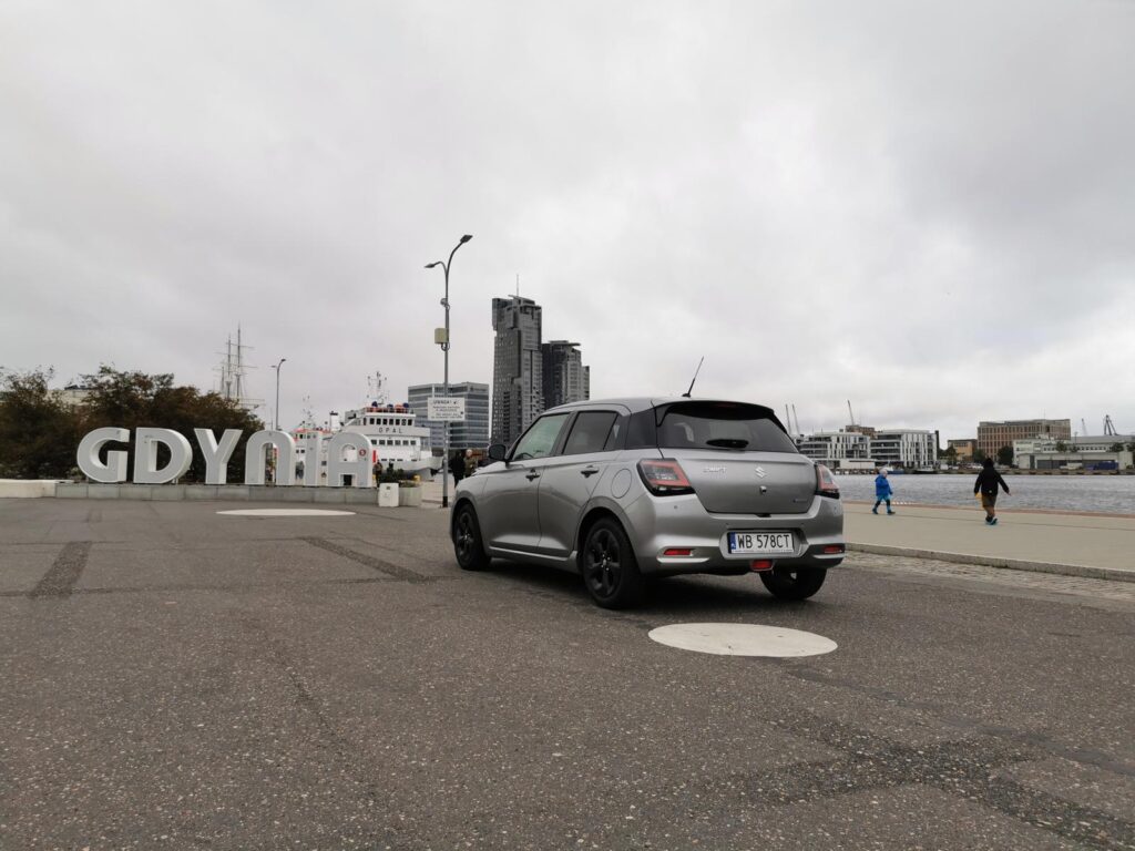 Po kilku godzinach jazdy nie ma bólu pleców ani poczucia, że „to już za długo”. I to jest chyba największy komplement, jaki można wystawić małemu hatchbackowi w trasie. W Sopocie i Gdyni Swift wygląda… po prostu dobrze. Bez kompleksów. Bez próby nadrabiania rozmiaru agresywną stylizacją. W wąskich uliczkach, przy krawężnikach, między zaparkowanymi SUV-ami jest jak powiew rozsądku. To auto, które nie konkuruje o uwagę, ale zbiera sympatię. I robi to naturalnie.