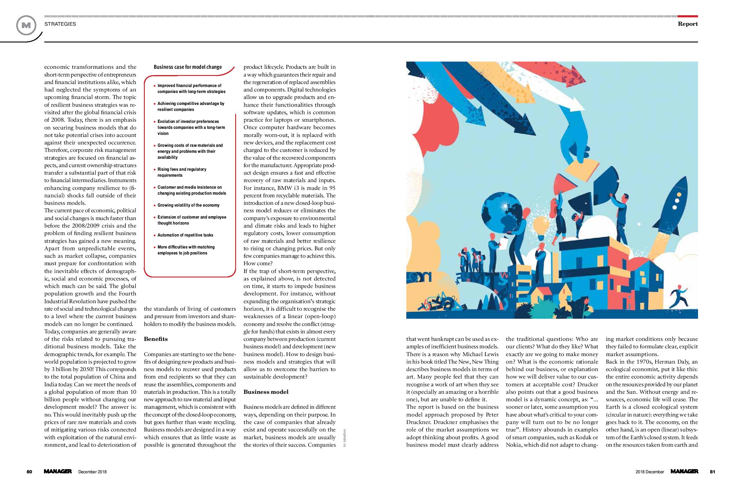 Companies are starting to see the benefits of designing new products and business models to recover used products from end recipients so that they can reuse the assemblies, components and materials in production. This is a totally new approach to raw material and input management, which is consistent with the concept of the closed-loop economy, but goes further than waste recycling. Business models are designed in a way which ensures that as little waste as possible is generated throughout the product lifecycle. Products are built in a way which guarantees their repair and the regeneration of replaced assemblies and components. Digital technologies allow us to upgrade products and enhance their functionalities through software updates, which is common practice for laptops or smartphones. Once computer hardware becomes morally worn-out, it is replaced with new devices, and the replacement cost charged to the customer is reduced by the value of the recovered components for the manufacturer. Appropriate product design ensures a fast and effective recovery of raw materials and inputs. For instance, BMW i3 is made in 95 percent from recyclable materials. The introduction of a new closed-loop business model reduces or eliminates the company’s exposure to environmental and climate risks and leads to higher regulatory costs, lower consumption of raw materials and better resilience to rising or changing prices. But only few companies manage to achieve this. How come?
