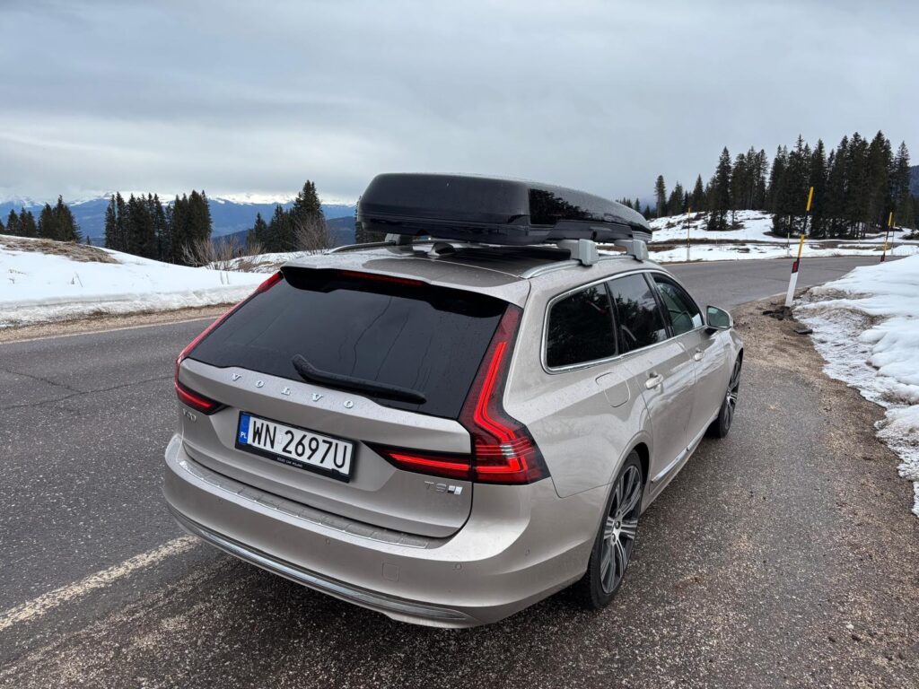 Warto wspomnieć o jednym elemencie, który w tej podróży okazał się kluczowy. Oryginalny box dachowy Volvo, w który importer wyposażył auto testowe, zdjął z kabiny cały logistyczny ciężar wyjazdu na narty. Narty, buty, kaski i drobiazgi pojechały bezpiecznie na dachu, a we wnętrzu pozostała przestrzeń na walizki i włoskie pyszności. To niby detale, ale właśnie one decydują o tym, czy podróż jest przyjemnością, czy kompromisem.
